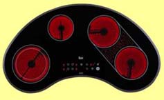 Ausstattung: vier Kochzonen, davon eine Zweikreiszone, eine Bräterzone